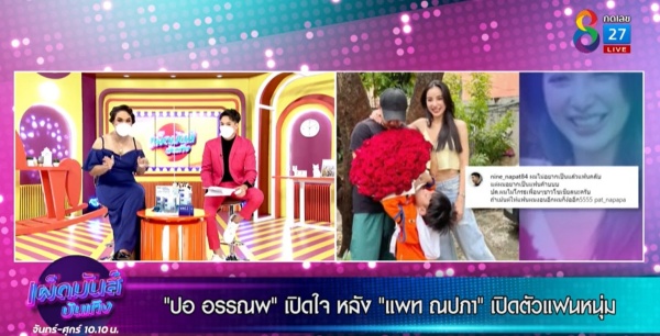 เป็นกระแสฮือฮาเมื่อช่วงลอยกระทงที่ผ่านมา หลังสาว แพท ณปภา ออกมาเปิดตัวหนุ่มรู้ใจ ในไอจีสตอรี่หลังจากนั้นมีโพสต์ต่อมาอีกวัน ก็ประกาศปิด จนวันนี้ยังอยู่ในช่วงงอนง้อของตำรวจหนุ่ม ทำเอาชาวเนตทั้งงงและสงสัย แม้กระทั่งหนุ่มคู่จิ้น ปอ อรรณพ พิธีกรจากรายการ “เผ็ดมันส์บันเทิง” ช่อง 8 เพราะมีคนเข้าใจว่า หนุ่มปอกำลังคบหากันกับแพท ณปภา หลังจากได้เห็นโพสต์ของสาวแพทแล้ว ปอยอมรับว่าตอนแรกรู้สึกตกใจและงงๆ มีเพื่อนและแฟนๆ ส่งเมสเสจมาหามากมายแสดงความเป็นห่วง วันนี้ แอนนา ขอพูดคุยเปิดใจกับ หนุ่มปอ ถึงความรู้สึกว่าเป็นอย่างไรบ้าง