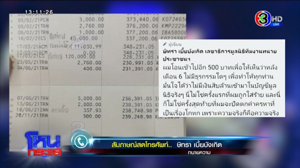 รายการโหนกระแสวันที่ 29 พ.ย. 64 “หนุ่ม กรรชัย กำเนิดพลอย” ในฐานะผู้ดำเนินรายการ ผลิตในนามบริษัท ดีคืนดีวัน จำกัด ออกอากาศทุกวันจันทร์-ศุกร์ เวลา 12.35 น. ทางช่อง 3 กดเลข 33 สัมภาษณ์ “ทนายรัชพล ศิริสาคร” ทนายความ ตัวแทนทนายตั้ม ถึงเรื่องที่เกิดขึ้น