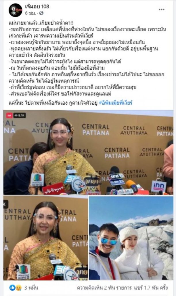 -ขอปรับสถานะ เหลือแค่พี่น้องที่ห่วงใยกัน ไม่ขอลงเรื่องรายละเอียด เพราะมันเก่วกะพี่เค้า เคารพความเป็นส่วนตัวพี่เวียร์