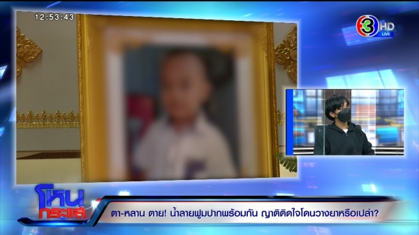 กรณีญาติติดใจสาเหตุการเสียชีวิตของตา-หลานคู่หนึ่ง ว่าอาจจะมีการวางยาเกิดขึ้นหรือเปล่า หลังเสียชีวิตในวันและเวลาเดียวกัน มีอาการน้ำลายฟูมปากเหมือนกัน ทั้งที่ “ตาเจี๊ยบ” เสียชีวิตในบ้าน แต่หลานจมน้ำตาย ขณะที่ครอบครัว “น้องที” ไม่ปักใจเชื่อว่าเด็กจะจมน้ำตายเอง