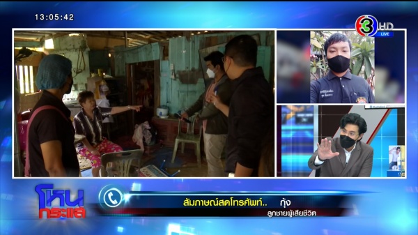 รายการโหนกระแสวันที่ 1 ธ.ค. 64 “หนุ่ม กรรชัย กำเนิดพลอย” ในฐานะผู้ดำเนินรายการ ผลิตในนามบริษัท ดีคืนดีวัน จำกัด ออกอากาศทุกวันจันทร์-ศุกร์ เวลา 12.35 น. ทางช่อง 3 กดเลข 33 สัมภาษณ์ ชูศักดิ์ พ่อน้องที, มณฑล ลุงของน้องที, สาริน คนเลี้ยงน้องที , หมวย คนเจอศพน้องทีคนแรก มาพร้อม “รศ.นพ. วีระศักดิ์ จรัสชัยศรี” ผู้เชี่ยวชาญด้านนิติเวช มศว.