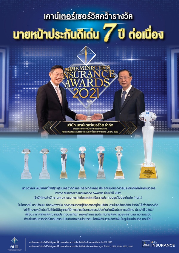 รางวัลดังกล่าวมีวัตถุประสงค์เพื่อส่งเสริมบทบาทของอุตสาหกรรมประกันภัยให้เป็นที่เชื่อถือศรัทธาและเป็นที่ยอมรับของประชาชน โดยได้รับการคัดเลือกจากคณะกรรมการนโยบายที่สํานักงาน คปภ. แต่งตั้งขึ้น ตอกย้ำความพร้อมในการบริหารจัดการและบริการที่หลากหลายของเคาน์เตอร์เซร์วิส ที่ช่วยสนับสนุนให้ประชาชนเข้าถึงหลักประกันและยกระดับคุณภาพชีวิตของประชาชนให้มั่นคง ผ่านช่องทางเคาน์ตอร์เซอร์วิสในร้านเซเว่นอีเลฟเว่นกว่า 12,800 สาขาทั่วประเทศ ช่องทางออนไลน์ 7App ที่มีผู้ใช้งานกว่า 26 ล้านดาวน์โหลดและ https://www.counterservice.co.th ซึ่งเปิดขายประกันภัยแบบครบวงจร อาทิ พ.ร.บ.รถยนต์และรถจักรยานยนต์, ประกันรถยนต์ภาคสมัครใจ (คุ้มครองระยะสั้น และ 1 ปี), ประกันสุขภาพและประกันอุบัติเหตุส่วนบุคคล, ประกันท่องเที่ยวที่คุ้มครองทั้งคุณและที่อยู่อาศัย, ประกันคุ้มครองที่อยู่อาศัย, ประกันภัยราคาย่อมเยาเพื่อประชาชน, มีสิทธิพิเศษสำหรับสมาชิก all member และโปรโมชั่นมากมาย