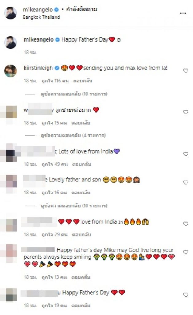 อย่างวันพ่อที่ผ่านมา หนุ่มไมค์ก็ไม่พลาดโพสต์ภาพและคลิปน่ารัก ๆ คู่ลูกชาย โดยระบุข้อความว่า “Happy Father’s Day” บอกเลยค่ะว่าแต่ละภาพนั้นดูแล้วหลายคนก็ยังซึ้ง ๆ น่ารักจนแฟนคลับทั่วโลกเข้ามาคอมเมนต์ชื่นชมจำนวนมากเลยทีเดียว เอาเป็นว่าไม่รอช้าไปชมกันจ้า