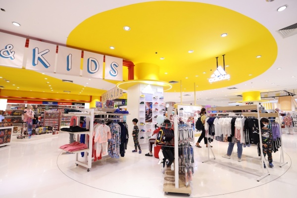- แผนก Mom & Kids เพิ่มความสนุก และสดใสด้วยการตกแต่งโดยใช้เทคนิคการลากเส้นสีเหลืองมัสตาร์ดให้ไหลไปทั่วบริเวณแผนก ตอบโจทย์ทุกความต้องการของคุณแม่ และครบทุกความต้องการสำหรับเด็กๆ กับสินค้าแบรนด์ดัง อาทิ Enfant, Papa, Sanrio, Farlin, Camera, Pigeon และแบรนด์ใหม่ Auka พร้อมเติมเติมทุกจิตนาการของลูกน้อยกับแผนกของเด็กเล่น พบกับสินค้าแบรนด์ดังมากมาย อาทิ LEGO, Marvella, My little Pony, Disney และ KIDDO