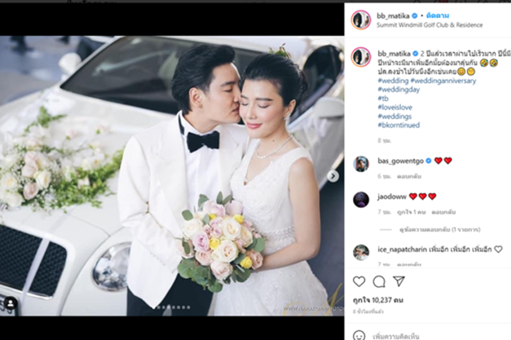 โดยล่าสุดในอินสตราแกรมของ “บี มาติกา” เธอได้โพสตืภาพวันงานเเต่ง ระบุข้อความว่า