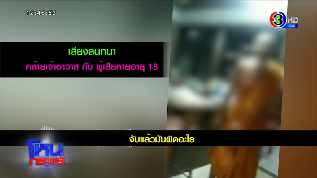 รายการโหนกระแสวันที่ 9 ธันวาคม 2564 “หนุ่ม กรรชัย กำเนิดพลอย” ในฐานะผู้ดำเนินรายการ ผลิตในนามบริษัท ดีคืนดีวัน จำกัด ออกอากาศทุกวันจันทร์-ศุกร์ เวลา 12.35 น. ทางช่อง 3 กดเลข 33 สัมภาษณ์ เนย ผู้เสียหายที่ถูกเจ้าอาวาสลวนลาม และ ป้าทิพย์ ป้าของผู้เสียหาย มาพร้อม หมอปลา มือปราบสัมภเวสี และ ทนายโนบิ กฤษฎา โลหิตดี