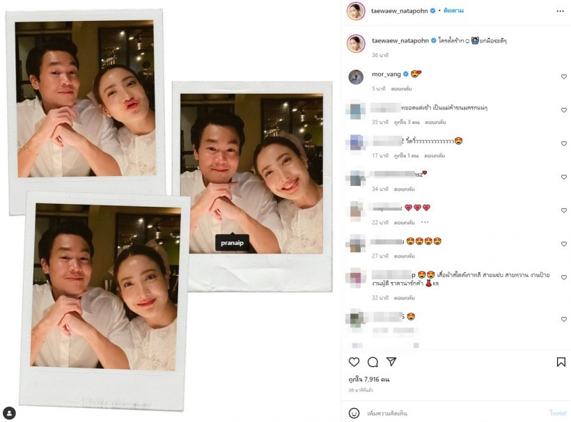 ล่าสุด “แต้ว ณฐพร’ สาดความหวานตั้งแต่เช้า โพสต์ภาพคู่หวานใจไฮโซหลังควงคู่ออกเดทอินเนอร์สุดโรแมนติก พร้อมข้อความระบุว่า …ใครตั้ลร้าก ยกมือซะดีๆ.. ไม่บ่อยหนักที่จะเห็นโหมดคลั่งรักของสาวแต้ว เรียกได้ว่าโลกนี้เป็นชมพู จนแฟน ๆ ต้องเข้ามาแซวกันอย่างมากมาย