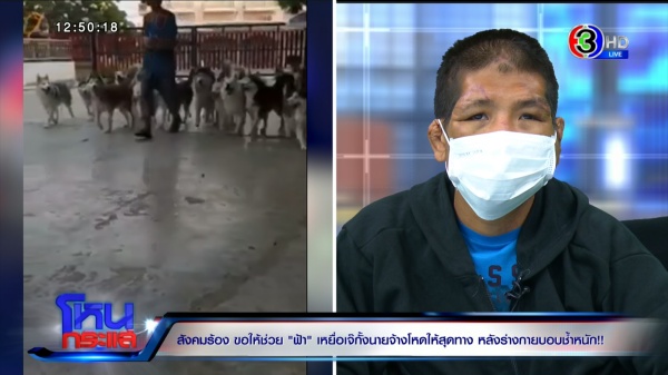 กรณี “ฟ้า” ชายหนุ่มอายุ 29 ปี ที่ถูก “เจ๊กั้ง” แฟนเก่าพี่ชายทารุณกรรมจนใบหน้าผิดรูป อวัยวะเพศเน่า โดนสั่งให้กินอึสุนัข อึนก ล่าสุดเจ๊กั้งถูกดำเนินคดีแล้ว ขณะที่สังคมวอนขอให้รายการโหนกระแส ช่วยเยียวยาร่างกายฟ้า
