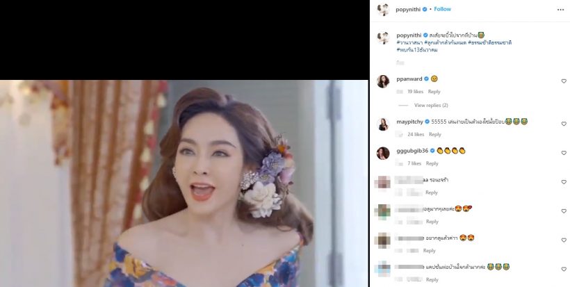 ทำเอาคนเป็นลูกสะใภ้ต่างแฮปปี้ดีใจสุดๆ ถึงขั้นออกปากว่า ‘ ใดๆ แม่สามีคือสุดมากกก ‘ ด้านสามี ป๊อบ นิธิ ก็ไม่น้อยหน้า โพสต์คลิปคุณภรรยา พร้อมแคปชั่นแซวสนั่นว่า …สงสัยจะบิ้วไปจากที่บ้าน #วานวาสนา #ลูกเต้ากลัวกันหมด #ธรรมช๊าติธรรมชาติ #พบกัน13ธันวาคม… ช่างเป็นครอบครัวที่อบอุ่นน่ารัก สนับสนุนกันสุดๆ