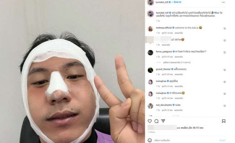 “ตั้ม วราวุธ” หรือ “ตั้ม เดอะสตาร์” ที่ล่าสุดออกมาอัพเดทรูปของตนเองมีผ้าพันแผลพันที่ใบหน้าหลายจุด โดยหนุ่มตั้มเล่าเองผ่านแคปชั่นถึงการทำศัลยกรรมว่า