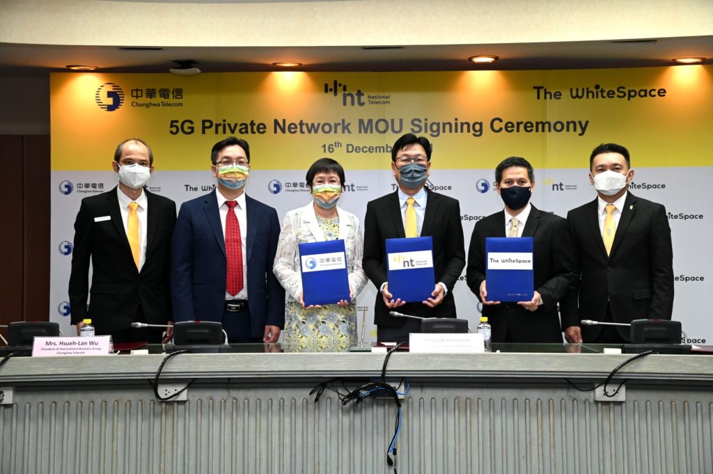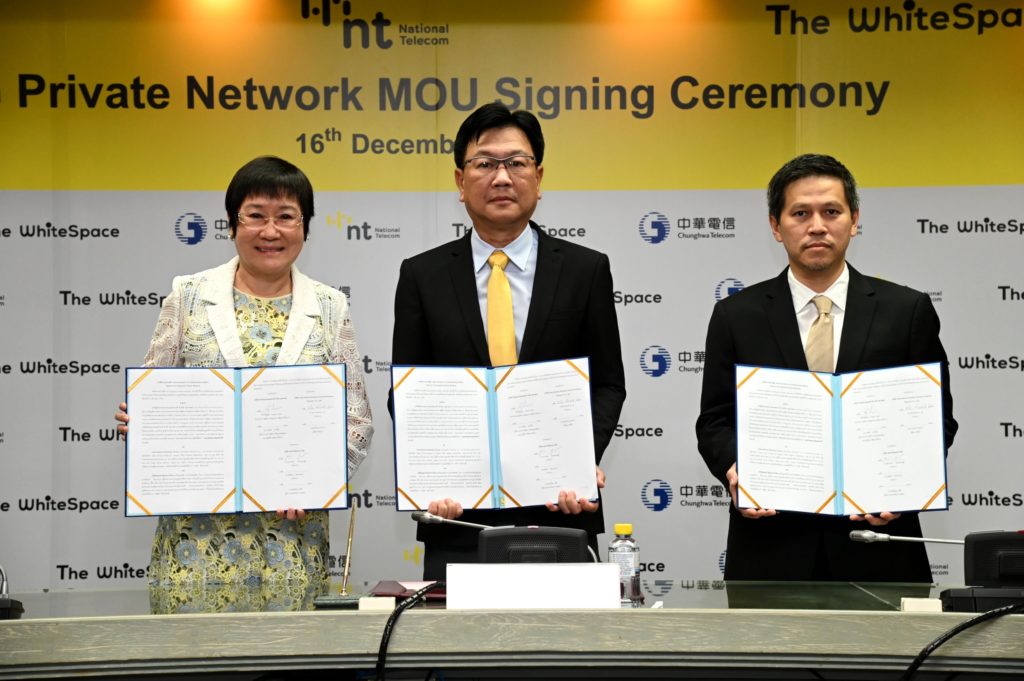 บริษัท โทรคมนาคมแห่งชาติ จำกัด (มหาชน) (NT) สำนักงานแจ้งวัฒนะ นายณัฐวุฒิ ศาสตราวาหะ รองกรรมการผู้จัดการใหญ่สายงานสื่อสารไร้สาย 2 NT คุณ ซาราห์ อู๋ (Sarah Wu) ประธานกลุ่มธุรกิจระหว่างประเทศ จุงหวา เทเลคอม (Chunghwa Telecom) และ นายปกรณ์ พรรณเชษฐ์ ประธานเจ้าหน้าที่บริหารบริษัท เดอะ ไวท์สเปซ (WhiteSpace (WSP) ลงนามในบันทึกข้อตกลงความร่วมมือโครงการ 5G Enterprise Private Network ระหว่าง บริษัท โทรคมนาคมแห่งชาติ จำกัด (มหาชน) (NT) กับ Chunghwa Telecom และ บริษัท เดอะไวท์สเปซ จำกัด