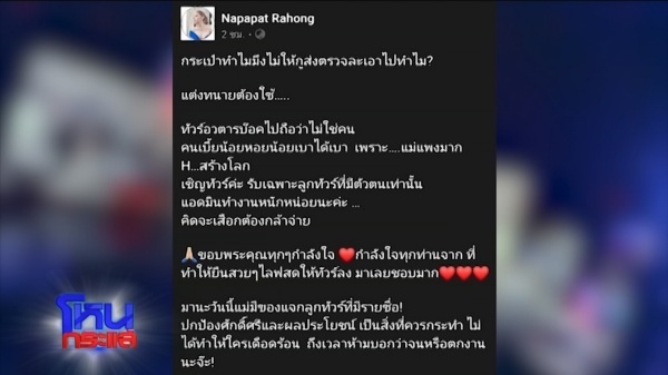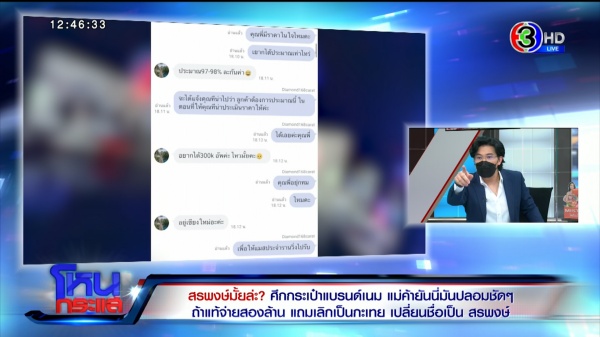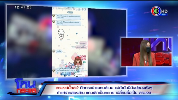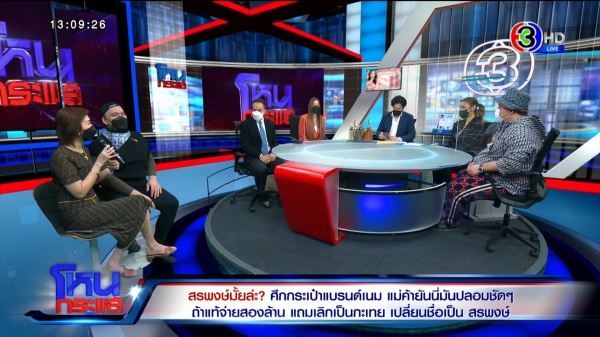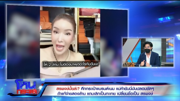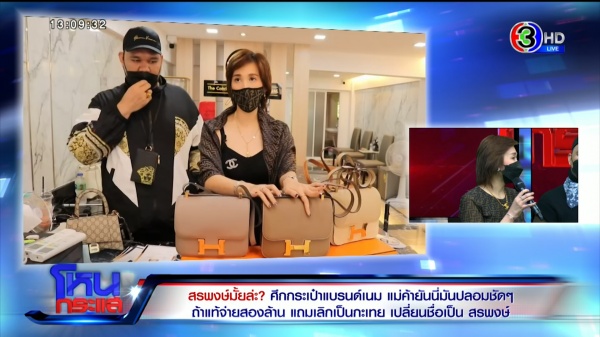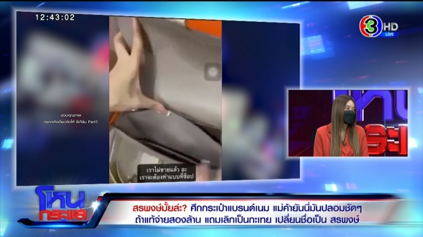 รายการโหนกระแสวันที่ 20 ธ.ค. 64 “หนุ่ม กรรชัย กำเนิดพลอย” ในฐานะผู้ดำเนินรายการ ผลิตในนามบริษัท ดีคืนดีวัน จำกัด ออกอากาศทุกวันจันทร์-ศุกร์ เวลา 12.35 น. ทางช่อง 3 กดเลข 33 สัมภาษณ์ ชมพู่ จิดาภา เจ้าของกระเป๋า มาพร้อม ทนายเกิดผล แก้วเกิด เผชิญหน้า ทีน่า แม่ค้าคู่กรณี มาพร้อมเพื่อนสองคน , ครูเจี๊ยบ – ครูพิชญ์ สถาบันตรวจสอบกระเป๋า นำผลการตรวจสอบมาออก , ครูเอ็ด ชานนท์ แตงโสภา จากสถาบัน Catch Fake Brandname