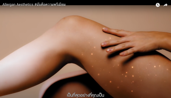 บริษัท แอลเลอร์แกน (ประเทศไทย) จำกัด หรือ Allergan Aesthetics ตอกย้ำการเป็นผู้นำเวชศาสตร์ความงามระดับโลกจากอเมริกา ที่มีประสบการณ์มายาวนานมากกว่า 30 ปี ด้วยแคมเปญ “ฉันคือความพรีเมียม” ปรับภาพลักษณ์แบรนด์ระดับสากล โดยการให้นิยามความงามผ่านการสร้างคุณค่าและเสริมความมั่นใจในตัวเอง ให้ทุกคนสร้างความพรีเมียม และเชื่อในความงามในแบบของตัวเอง ตั้งเป้าขยายตลาดความงามเพื่อตอบโจทย์ผู้บริโภคครบทุกเจนเนอเรชัน สำหรับแคมเปญ “ฉันคือความพรีเมียม” คือการนำเสนอถึง ความงามของผู้หญิงที่มีอยู่ในตัวตนของทุกคน โดยมีวลีเด็ดอย่าง ‘ไม่ใช่ป้ายชื่อแบรนด์สุดหรู’ (เครื่องแต่งกาย) ‘ไม่ใช่สิ่งที่อยู่บนคอ’ (เครื่องประดับ) ‘ไม่ใช่ลิมิเต็ดอิดิชั่นที่สวม’ (รองเท้า) ‘ไม่ใช่กระเป๋าแบรนด์เนมที่ต้องสะสม’ ‘ไม่ใช่คอลเลคชั่นใหม่บนตัว’ แต่คือฉัน #ฉันคือความพรีเมียม เป็นที่สุดอย่างที่คุณเป็น โดยสามารถรับชมภาพยนตร์ได้ที่