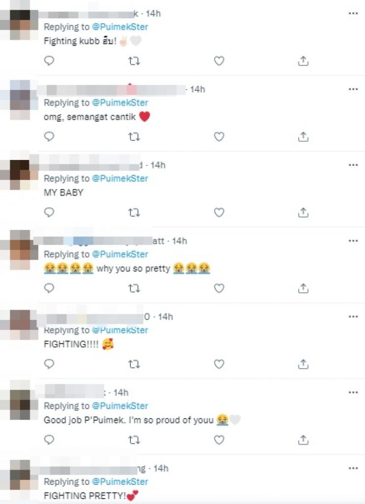 ล่าสุด เธอได้โพสต์ภาพตัวเองผ่านช่องทางโซเชียล อย่างในทวิตเตอร์ @PuimekSter เธอบอกว่า “อีก4เดือนจะจบแล้วววว จบเถอะ จบซักที” และในทางอินสตราแกรม @puimekster ระบุแคปชั่นว่า “94.4%” ท่ามกลางแฟนคลับทั้งในและต่างประเทศทั่วเอเชียเข้ามาส่งกำลังใจและแสดงความยินดีล่วงหน้า