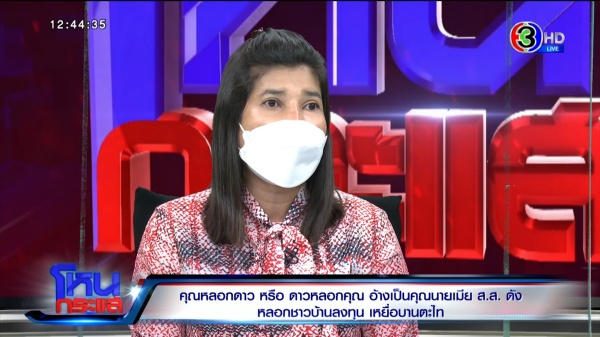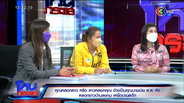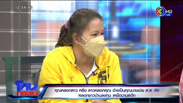 รัตน์ : ที่ดินเขายืมและพาหนูไปจำนอง เอาเงิน 2 แสน อ้างว่าจะเอาเงินไปจ่ายหน้าห้อง พอถึงเวลาเขาบอกว่ายืมแค่อาทิตย์นึงเพราะงบประมาณจะออก 40 ล้าน พอถึงเวลาไม่มีเงินมาปิด 2 แสนตรงนี้ หนูก็ตัดสินใจขาย หนูเข้าไปบ้านคนซื้อประมาณ 10 นาที คุณนายดาวก็โทรให้พรรคพวกเข้าไปข่มขู่ให้หนูเซ็นขายแล้วเขาเป็นคนรับเงิน หนูไม่ได้รับเงินเลย ที่ก็ไปหมดเลย