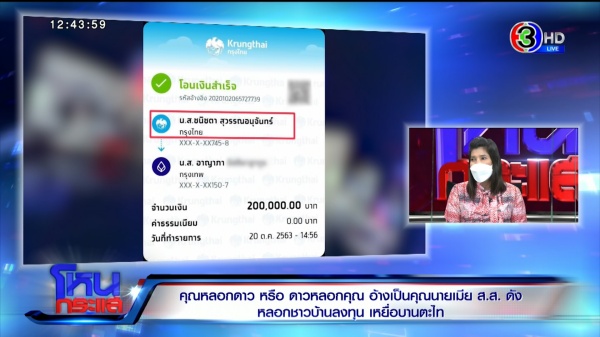 ดาว : ก็เข้าบัญชีจริงค่ะ แต่ประเด็นอย่างอื่นดิฉันมีหลักฐานต่อสู้