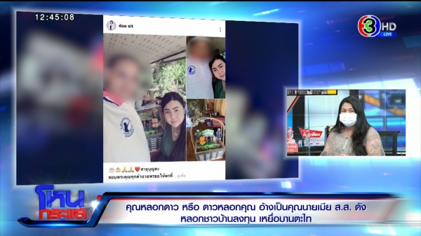 นุ่น : เขาส่งรูปมาให้ หนูรู้จักดาวเป็นเวลา 9 ปีแล้วค่ะ เขาก็ส่งรูปมาให้บอกว่าเขาเป็นภรรยาส.ส. ในจังหวัดนครศรีธรรมราชค่ะ