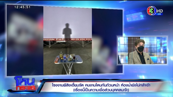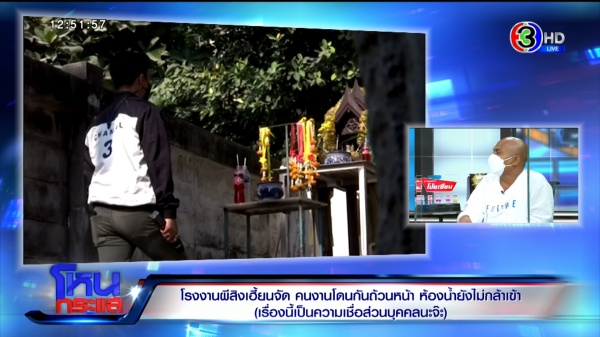 รายการโหนกระแสวันที่ 24 ธ.ค. 64 “หนุ่ม กรรชัย กำเนิดพลอย” ในฐานะผู้ดำเนินรายการ ผลิตในนามบริษัท ดีคืนดีวัน จำกัด ออกอากาศทุกวันจันทร์-ศุกร์ เวลา 12.35 น. ทางช่อง 3 กดเลข 33 สัมภาษณ์ แอร์ เดอะมูส เจ้าของโรงงาน , องุ่น กรรมการผู้จัดการ , ชำนาญ , สิริวรรณ พนักงาน มาพร้อม หมอปลา มือปราบสัมภเวสี