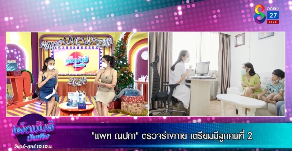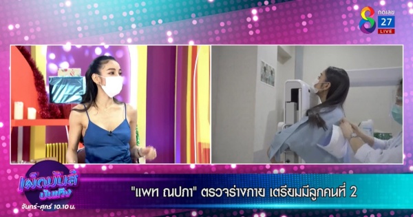 ก็เป็นวัตถุประสงค์ด้วยค่ะ มีการถามคุณหมอเรื่องนี้โดยตรง ถ้าสมมุติว่าแพทแพลนว่าจะมีลูกแต่ไม่ใช่เร็ว ๆ นี้ คุณหมอคิดว่าแพทยังไปไหวมั้ย? คุณหมอก็เลยแนะนำว่าอยากให้เก็บไข่เลยมั้ยคะ? เพราะว่าไข่ในวัยนี้น่าจะดีกว่าไข่ในวัยอีก 3 ปีข้างหน้า แพทก็เลยบอกว่าแพทไม่อยากเก็บ หมอก็บอกว่าเก็บเถอะ แพทก็เลยบอกสมมุติว่ามันไม่ใช่เร็วๆนี้หรอก หมอบอกถ้าในวัย 39 ปี ปิ๊งว่าจะมีไอเดียจะมีลูก ก็จะได้ไข่ในวัย 35 ปี ไข่ก็จะสมบูรณ์กว่าไข่ในวัย 39 ปี แล้วไข่ในวัย 39 ปีก็ไม่รู้ว่าจะสมบูรณ์เท่ากับในวัย 35 มั้ย ตอนนี้แพทเช็คอัพทั้งหมดแล้ว หน้าอกก็ไม่มีซี๊ดไม่มีอะไร เพราะแพททำทั้งอัลตร้าซาวด์และเมมโมแกรมแล้ว ครั้งแรกในชีวิตอยากบอกทุกคนเลยว่าไม่ต้องกลัว ไม่เจ็บเลย คือคนไปกลัวเพราะว่ามันมีการบีบ คือแพท โดนบีบมากว่าคนอื่นด้วยนะ หมอบอกว่าเคสของแพท คือ ตรวจครั้งแรก ตัวเล็ก และ มีก้อน คือเรามีซิลิโคนที่หน้าอก เพราะฉะนั้นการบีบแต่ละข้างจะเยอะกว่าคนอื่น เช็คปอดด้วยปอดเคลียร์คือสะอาด ผ่านการมีลูกมาแล้ว กังวัลเรื่องมวลกระดูกของแพทคือสมบูรณ์มวลกระดูกดีมากไม่มีปัญหาอะไรเลย ท้องล่างท้องบนก็ดีมากคลีนมาก หมอเลยแนะนำว่า เก็บไข่มั้ย คือก็ดีหมดกลัวว่าทำแล้วมีเอง จะเสียเงินฟรีมั้ย (หัวเราะ) ทีนี้ถ้าเราทำมาคลิปว่า “เรามาตรวจสุขภาพกัน” แล้วใครจะไปดูคลิปฉัน (หัวเราะ) พอเราบอกว่าเตรียมมีลูก นั่นไงเข้ามาดูกันใหญ่เลยน้า (ฮะฮ่า)