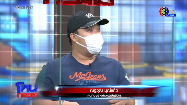 รายการโหนกระแสวันที่ 27 ธ.ค. 64 “หนุ่ม กรรชัย กำเนิดพลอย” ในฐานะผู้ดำเนินรายการ ผลิตในนามบริษัท ดีคืนดีวัน จำกัด ออกอากาศทุกวันจันทร์-ศุกร์ เวลา 12.35 น. ทางช่อง 3 กดเลข 33 สัมภาษณ์ วุฒิ วรวุฒิ ขวัญมา คนเข้าไปช่วยเหลือ , โจ้ ณัฐวุฒิ มุณีแก้ว คนที่อยู่ห้องตรงข้ามผู้เสียชีวิต , รัฐวิทย์ มงคลสกุลพัชร์ นิติบุคคลคอนโด , มาพร้อม ผศ.ร.ต.อ.ดร. จอมเดช ตรีเมฆ นักวิชาการด้านอาชญาวิทยา วิทยาลัยนวัตกรรมสังคม มหาวิทยาลัยรังสิต