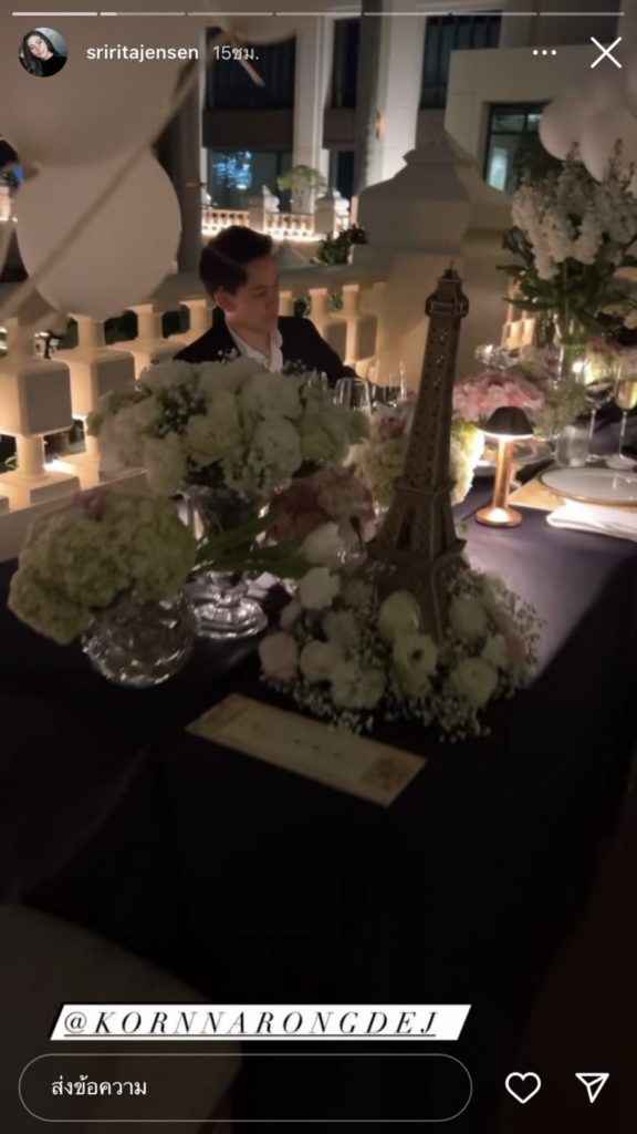 ล่าสุด “ริต้า-กรณ์” แอบหนีลูกชายมาออกเดทเติมความหวานให้กันสักนิด ดินเนอร์สุดหรูแสนโรแมนติกริมแม่น้ำเจ้าพระยา พร้อมแคปชั่นหวานละมุนว่า “A perfect night to remember” งานนี้นอกจากนี้แหวนเพชรเม็ดเป้งจะเด็นเตะตาแล้ว แฟน ๆ แอบแซวเบบี๋คนที่สองต้องมาแล้ว