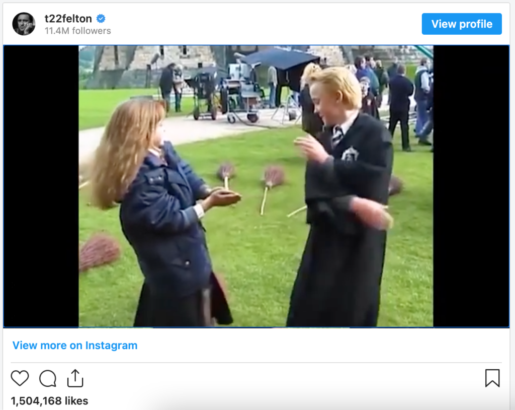 เรายังไม่รู้ว่ารายการพิเศษ “Harry Potter 20th Anniversary: Return to Hogwarts” ที่จะออกอากาศทาง HBO Go จะมีอะไรให้ผู้ชมได้ย้อนรำลึกถึงความหลังของหนังชุดนี้กันบ้าง แต่ทอม เฟลตัน นักแสดงผู้สวมบทดราโก มัลฟอย ได้ลงคลิปให้ดูบนอินสตาแกรมครับว่า เอ็มมา วัตสัน สมัยอยู่ในกองถ่าย “Harry Potter And The Sorcerer’s Stone” นั้น เป็นยังไงบ้าง