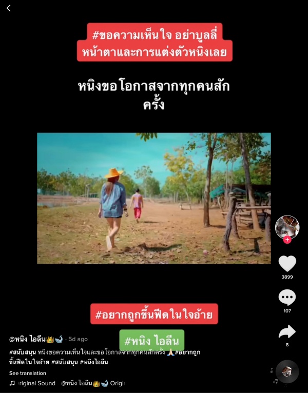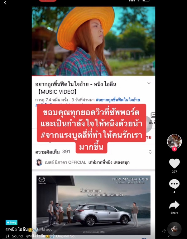 เพิ่งจะปล่อยเพลง “อยากถูกขึ้นฟีดในใจอ้าย” กับบ้านหลังใหม่ “ไทดอลมิวสิค” ไปได้ไม่นาน สำหรับ “หนิง ไอลีน” อดีตเจ้าของเพลงดังร้อยล้านวิวเพลง “ฮัก ฮัก ฮัก” แต่ก็ต้องกลับมาเจอคอมเม้นท์ที่ไม่สร้างสรรค์จากเกรียนคีย์บอร์ดบางคน เพราะไม่ว่า #หนิงไอลีน จะโพสต์หรือทำคลิปลงโซเชียลของตัวเองอะไรมาก็แล้วแต่ ก็จะมีคนบางจำพวกที่จะคอยบูลลี่เธออยู่ตลอดแทบจะทุกคลิปเลยก็ว่าได้