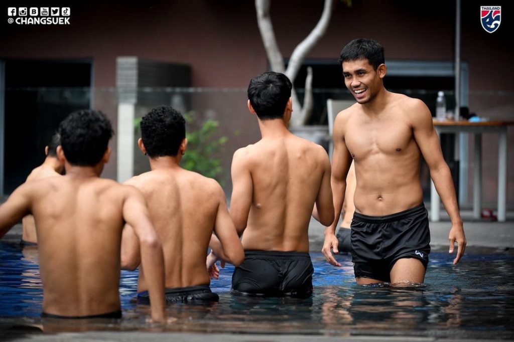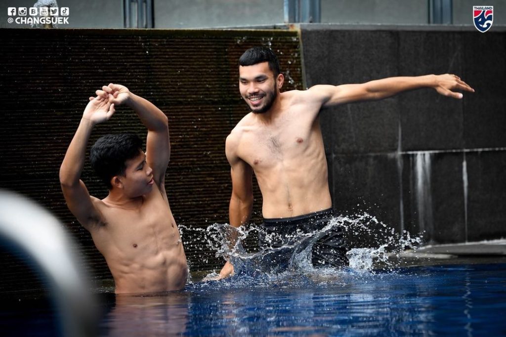 เป็นภาพบรรยาการการพักฟื้นร่างการของ เหล่าช้างศึก ทีมชาติไทย ที่ต้องบอกเลยว่าสาว ๆ ต้องร้องว้าวแน่นอน เพราะเหล่านักเตะได้เข้าโปรแกรมฟื้นฟูสภาพร่างกายภายในโรงแรมที่พัก หลังเกมที่ได้ลงสนามในเกมเมื่อวานที่ผ่านมา