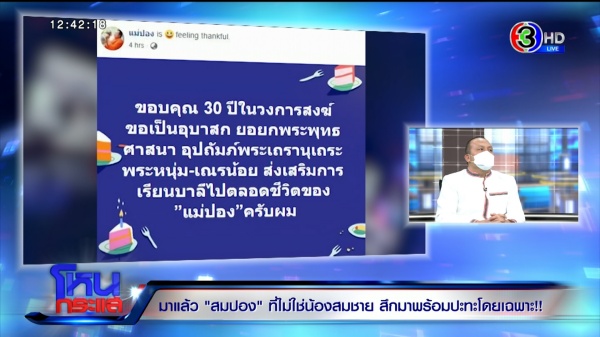 รายการโหนกระแสวันที่ 30 ธ.ค. 64 “หนุ่ม กรรชัย กำเนิดพลอย” ในฐานะผู้ดำเนินรายการ ผลิตในนามบริษัท ดีคืนดีวัน จำกัด ออกอากาศทุกวันจันทร์-ศุกร์ เวลา 12.35 น. ทางช่อง 3 กดเลข 33 สัมภาษณ์ สมปอง ซึ่งให้เคลียร์ทุกประเด็นร้อนที่เกิดขึ้น