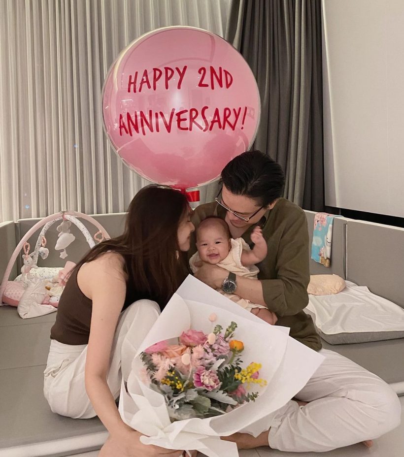 เดือนธันวาคมที่ผ่านมา เป็นวันครบรอบเเต่งงาน ซึ่งมิว นิษฐาเองก็เซอร์ไพรส์คุณสามีด้วยดอกไม้เเละลูกโป่ง เล็ก ๆ เเต่อบอุ่นสุด ๆ