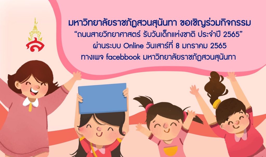 สวนสุนันทา ขอเชิญร่วมกิจกรรม “ถนนสายวิทยาศาสตร์ รับวันเด็กแห่งชาติ ประจำปี 2565” ผ่านระบบ Online