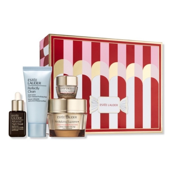 เซตของขวัญ HOLIDAY 2021 Firm&Glow Revitalizing Supreme Crème Set เซตผลิตภัณฑ์บำรุงผิว คืนความอ่อนเยาว์ และความสุขภาพดีให้แก่ผิวของคุณ ประกอบไปด้วย 1) Revitalizing Supreme+ Global Anti-Aging Soft Crème ขนาด 50 มล. 2) Perfectly Clean Cleanser ขนาด 30 มล. 3) Advanced Night Repair Synchronized Multi 4) Recovery Complex ขนาด 15 มล. และ 5) Revitalizing Supreme+ Global Anti-Aging Soft Eye Crème ขนาด 5 มล. รับรองว่าถ้าซื้อให้เป็นของขวัญสาวๆ เหล่าบิวตี้เลิฟเวอร์ ต้องมีฟินแน่นอน!