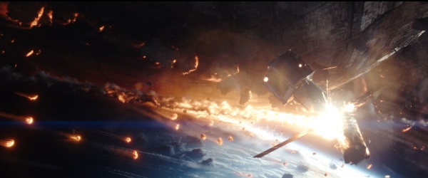 แรงกระแทกของดวงจันทร์ทำให้เกิด สะเก็ดจากดวงจันทร์ แตกกระจายไปทั่ว และตกลงมายังโลกแถมยังลุกโชนไปด้วยประกายไฟจากการเสียดสีในชั้นบรรยากาศ ไม่เพียงแค่ทำลายสิ่งปลูกสร้างภายในโลกเท่านั้น ก้อนสะเก็ดจากดวงจันทร์ยังพุ่งทำลายดาวเทียมและสถานีอวกาศนอกโลก สร้างความเสียหายกับการโทรคมนาคมในช่วงเวลาที่วิกฤตเช่นนี้อีกด้วย
