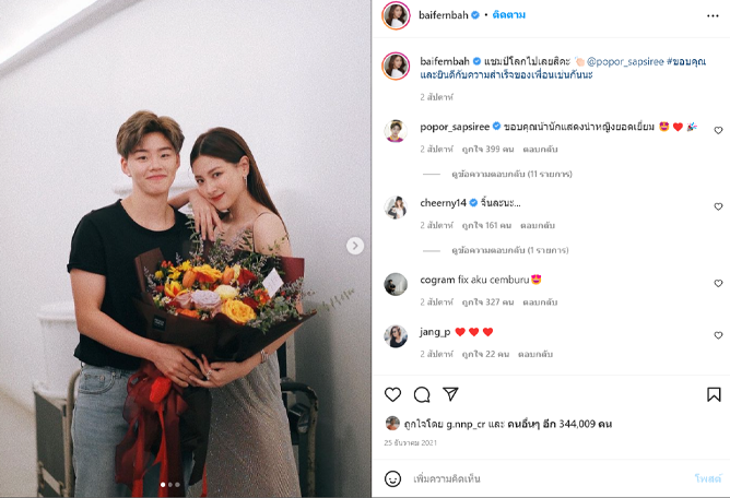 ใบเฟิร์น พิมพ์ชนก กับนักแบดมินตันทีมชาติชื่อดัง ปอป้อ-ทรัพย์สิรี แต้รัตนชัย ทำเอาหลายคนเกิดจิ้นกันสนั่น ที่ก่อนหน้านี้ก็มีภาพคู่หอบดอกไม้ร่วมยินดีกัน แถวสิ้นปีที่ผ่านมาร่วมทริปเที่ยวทะเลภูเก็ตด้วยกันอีกด้วย