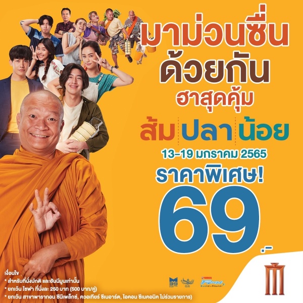 ล่าสุด M39 มอบความสุขสุดคุ้ม ชวนม่วนซื่นกับ “ส้ม ปลา น้อย” ในราคาพิเศษ 69 บาท เฉพาะวันที่ 13-19 มกราคม 2565 ที่โรงภาพยนตร์ในเครือ เมเจอร์ ซีนีเพล็กซ์ และโรงภาพยนตร์ในเครือ เอส เอฟ ทั่วประเทศ ดูรายละเอียดและเงื่อนไขเพิ่มเติมที่เพจ Major Group https://www.facebook.com/171345406093/posts/10158833319761094/ และที่เพจ SF Cinema https://www.facebook.com/148069940832/posts/10159769013010833/ งานนี้ยังมั่นใจดูหนังอย่างปลอดภัย ภายใต้มาตรการป้องกันโควิด-19 อย่างเคร่งครัดของโรงภาพยนตร์อีกด้วย มาฮานำกันเด้อ