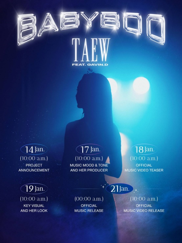 ขอเป็นน้องใหม่ในวงการเพลงกับการเปิดตัวนางเอกมากฝีมือ “แต้ว ณฐพร เตมีรักษ์” ของช่อง 3 สลัดคราบการแสดงละครที่หลากหลายบทบาทกระโดดสู่สายงานเพลง ขอท้าพิสูจน์ความสามารถอีกด้านด้วยความทุ่มเทตั้งใจอย่างเต็มที่ ในนาม “TAEW” กับเพลงซิงเกิล “BABYBOO” ซึ่งถือเป็นซิงเกิลแรกในชีวิตในฐานะศิลปินนักร้องเดี่ยวอย่างเต็มตัว