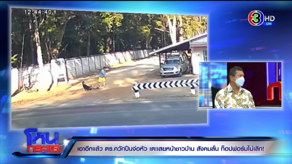 ไพศาล : ไม่ได้ครับ ข้อเท็จจริงยังไงยังไม่ชัด แต่จากภาพท็อปฟอร์มมาก ตร.เรา แต่ต้องฟังสองด้าน ถ้าเรื่องนี้เขากระทำไม่อยู่ในหน้าที่ ก็รับผิดเฉพาะตัว เรื่องแรกไปดูเรื่องปืนก่อนว่าเขาเป็นเจ้าของหรือเปล่า เพราะมีการถือปืนไปในที่สาธารณะมีใบอนุญาตพกพามั้ย เพราะเห็นว่าไม่ได้อยู่ในเครื่องแบบ สองปืนเป็นของเขามั้ย เขามีครอบครองได้ยังไง ส่วนเรื่องทำร้ายร่างกาย เรื่องเตะไปที่หน้า เราบาดเจ็บเกิน 20 วันมั้ย