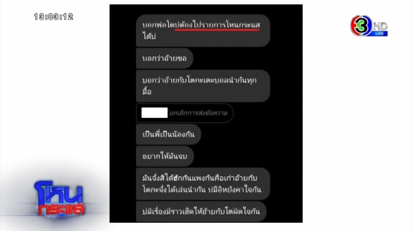 ไก่ : เมื่อวานลูกชายคู่กรณีส่งมาให้หลานชายผม คือลูกพี่ชายผม เพราะเขาเตะบอลด้วยกัน
