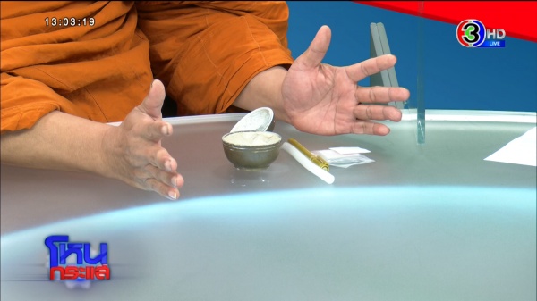 จตุรงค์ : ถ้าถามผม ตราบใดที่ไม่ได้มีมาในเรื่องการเรียกเงิน เรียกทอง อันสูงค่าเกินไป ถ้าทำเพื่ออนุเคราะห์ ศรัทธา ทำเพื่อกำลังใจญาติโยมผมก็หยวนให้ ขั้นตอนที่ทำเมื่อกี้ไม่มีปัญหาเลยเพราะโอเคหมด แต่ไม่โอเคอย่างเดียว พอนะหน้าทองที่ฟลูเฟซ มันไปพ้องกับการทำสปาทางอังกฤษ ปากีสถาน เกาหลี คือการทำมาสก์ด้วยทองคำแบบเต็มหน้า คุณก็ต้องเข้าใจก่อนที่เป็นกระแสเพราะดันไปคล้ายกับการทำสปาแบบนั้น แต่ถ้าแค่นี้มันโอเค ไม่มีปัญหา