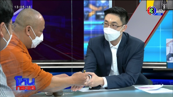 จตุรงค์ : ถ้าทำแค่เหมือนที่ทำกับคุณไก่ ผมก็ไม่มีปัญหา แต่เมื่อกี้ที่อ้างคำสั่ง 2467 ก็น่าเป็นห่วงเหมือนกัน เจ้าคณะจังหวัด เจ้าคณะปกครอง บางรูปยังทำอยู่เลย แล้วถ้าจะมาสั่งแต่พระตัวเล็กๆ แต่พระตัวใหญ่ๆ คุณไม่ได้สั่งให้เขาหยุด มันต้องไปทั้งหมด ต้องบังคับให้ไปทางเดียวกันทั้งหมด ไม่ใช่จะมาบังคับเฉพาะพระตัวเล็กๆ แต่พระตัวใหญ่ๆ ประชุมอยู่ในมส. ไม่ได้ห้ามเขา พระตัวใหญ่ๆ ยังทำเหมือนกัน แต่ที่แปลกใจ สมัยคุณบุ๋ม ปนัดดาไปทำฟลูเฟซเหมือนกันที่เชียงใหม่ แต่ไม่เป็นข่าว เขาทำมาหลายปีก่อน ผมเห็นครั้งแรกจากคุณบุ๋มนั่นแหละ ผมว่าการขยายตัวโปรดักซ์เกาหลีมันมีมากขึ้น สมัยก่อนการทำโกลด์สปา มีแค่ปากีสถาน แล้วลามมาอังกฤษ สักพักสินค้าพวกมาสก์ก็ระบาดที่เกาหลี ตอนนี้เด็กรุ่นใหม่จะคุ้นกับการมีทองคำเต็มหน้า มาจากเครื่องสำอางนะ มันเลยผนวกกัน พอมาวันนี้พระท่านเจิม แล้วอยู่เต็มหน้าเลยก็ตกใจ ไม่คุ้นเคยหรือเปล่า