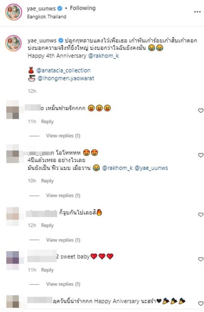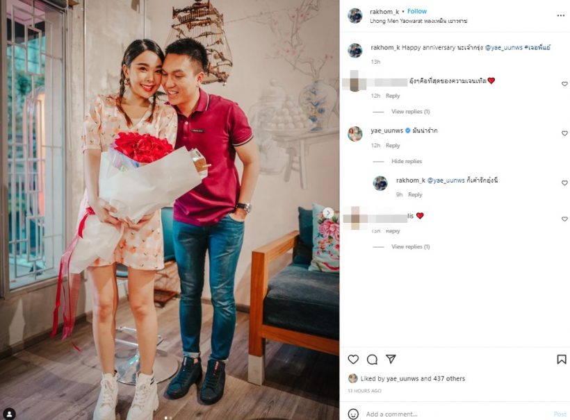 ในขณะที่พี่อุ๋งได้โพสต์แคปชั่นว่า “Happy anniversary นะเจ้ากรุ่ง @yae_uunws #เจอพี่แย้” งานนี้ทำเอาแฟนคลับเข้ามาแสดงความยินดีกับรักที่มั่นคง แต่ก็ขอลุ้นข่าวดีหน่อยนะคะว่าเมื่อไหร่น้อออจะได้ยินข่าวดี อิอิ
