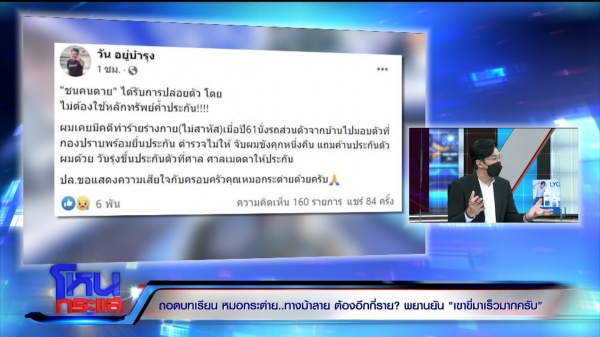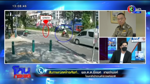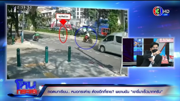 รายการโหนกระแสวันที่ 24 ม.ค. 65 ดำเนินรายการโดย “หนุ่ม กรรชัย กำเนิดพลอย” ผลิตในนามบริษัท ดีคืนดีวัน จำกัด ออกอากาศทุกวันจันทร์-ศุกร์ เวลา 12.35 น. ทางช่อง 3 กดเลข 33 สัมภาษณ์ พ.ต.อ.สุกิจ อรุณฤกษ์ถวิล รอง ผบก.จร., นพ.ธนะพงศ์ จินวงษ์ ผู้จัดการศูนย์วิชาการเพี่อความปลอดภัยทางถนน มูลนิธินโยบายถนนปลอดภัย รวมทั้ง ตี๋ สมชาย (นามสมมติ) พยานที่อยู่ในที่เกิดเหตุ
