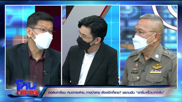 นพ.ธนะพงศ์ : ระบบที่คุยกันออกสื่อก็คุยกันมาตั้งนานแล้ว เรารับรู้ว่ามีการจะเชื่อมระบบตั้งนานแล้ว แต่ไม่ขยับกันซะที ก็อย่างที่เรียน อยากให้ท่านรองช่วยสะท้อนเรื่องนี้ให้สังคมช่วยกันรับรู้ ช่วยกันตั้งคำถาม ผมขอถามไปเลยว่าทางคมนานคม ติดว่าจะพร้อมให้เกิดการเชื่อมโยง และบังคับใช้เรื่องนี้อย่างครบวงจรได้ภายในเมื่อไหร่ หรือดีเดย์ไว้เลยว่าก่อนสงกรานต์นี้เราจะมีระบบนี้เกิดขึ้น ทางตร.เองจะได้สบายใจ เพราะตอนนี้ระบบตร. กว่า 70-80 เปอร์เซ็นต์เป็นระบบอัตโนมัติ เป็นกล้องตรวจจับครับ