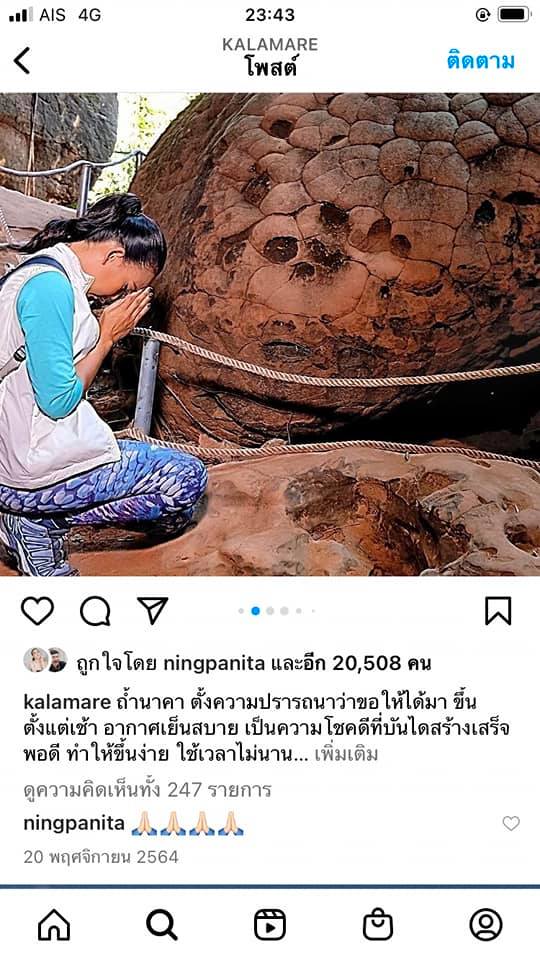 ทั้งนี้หลังจากเเป็นกระแสทางสังคม กาละแมร์ก็ได้โพสต์รูปขณะกำลังกราบไหว้ในถ้ำนาคา พร้อมข้อความระบุว่า “เรียนชี้แจงทุกท่านค่ะจากข่าวคราวดาราขึ้นถ้ำนาคาและมีเหตุการณ์ต่างๆ แมร์ขอชี้แจ้งว่า ไม่ใช่แมร์นะคะ เพราะทุกครั้งที่เดินขึ้นถ้ำนาคาแมร์ เดินขึ้นไปด้วยความเคารพทั้งสถานที่ ไปหาพ่อปู่แม่ย่าด้วยศรัทธา ไปแบบมือเปล่า ไม่เคยจัดโต๊ะ บวงสรวงไม่มีเปิดเพลง แมร์ บินถึงสกลนครตอนสายๆ นั่งรถ เริ่มขึ้นถ้ำประมาณบ่ายโมง ไกด์แนะนำให้ทำอะไรรอจุดไหน เราทำตามขั้นตอนเพราะเรามีความรักเคารพศรัทธาถ้ำนาคามากผู้คนมากมายก็มาด้วยศรัทธาเช่นกัน ทุกคนก็ปฏิบัติตามกฏ ตอนไปถึงจุดสักการะบนเขา กำลังเรียกคิวที่ 20 เราได้บัตรคิวที่ 64 ก็รอประมาณชั้วโมงครึ่ง จนถึงคิวของเรา จึงเดินเข้าและออกตามเวลาที่เจ้าหน้าที่จัดให้