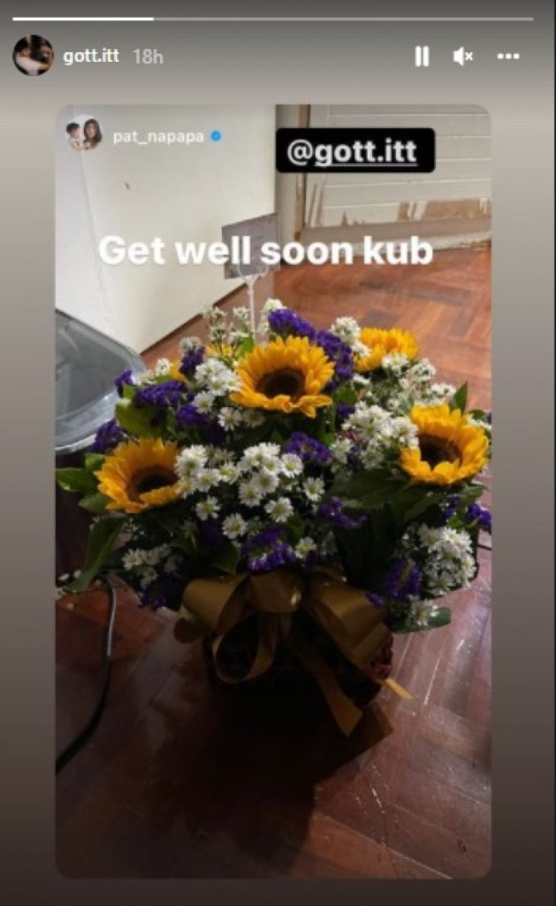 แต่ล่าสุดพบว่า อดีตแฟนของสาวแพทอย่าง “ก๊อต” ก็ได้ส่งความห่วงใยโดยการส่งกระเช้าดอกไม้ให้แพท ทางด้านแพทได้โพสต์ลงสตอรี่อินสตราแกรมพร้อมแท็กหาก๊อต ในขณะที่ก๊อตรีโพสต์และแนบข้อความบอกว่า “Get well soon kub” ซึ่งความห่วงใยนี้ก็แสดงให้เห็นว่าถึงเลิกกันแล้วแต่ก็เป็นเพื่อนกันและยังมีความห่วงใยกันเสมอ