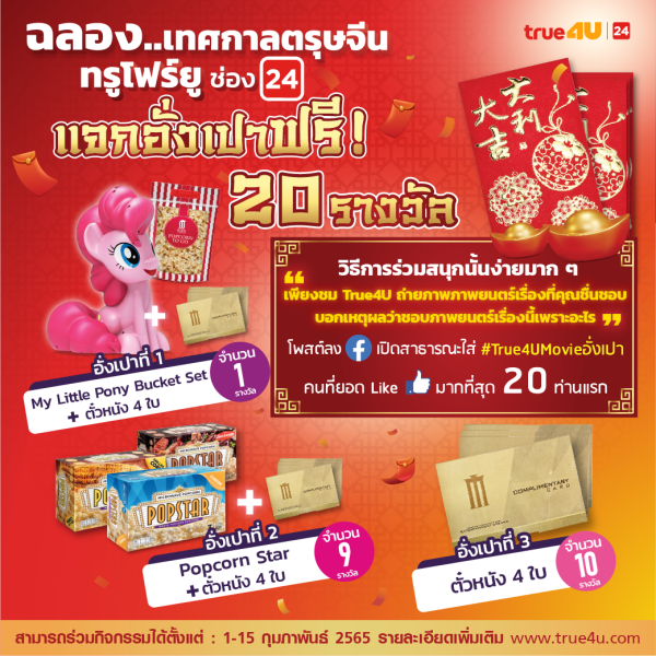 ฟินสุดต้อนรับตรุษจีน “ทรูโฟร์ยู ช่อง 24” แจกฟรี “มูฟวี่อั่งเปา”