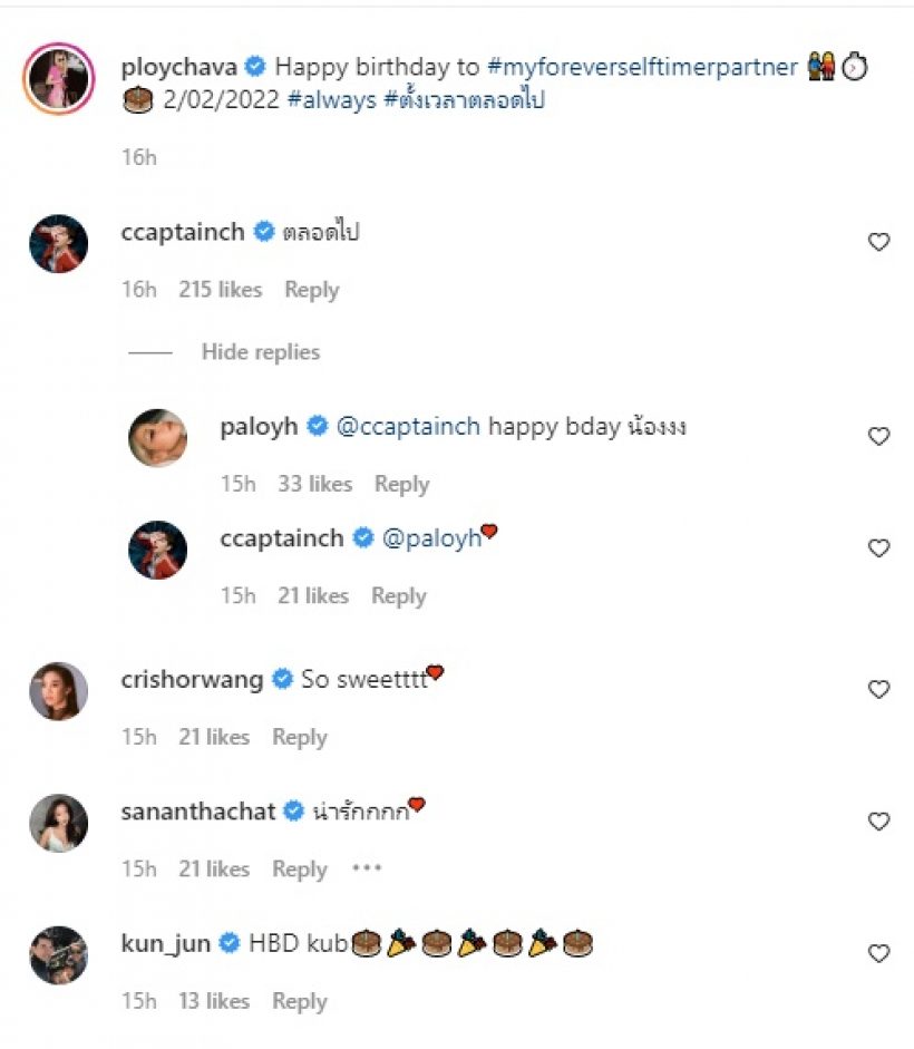 ล่าสุด 2 ก.พ. เป็นวันเกิดของ หนุ่มกัปตัน อายุครบ24ปี งานนี้หวานใจรุ่นพี่ อย่าง สาวพลอย ขอหวานออกสื่อสักครั้ง ตอกย้ำสถานะด้วยภาพคอลเลคชั่นภาพคู่ พร้อมข้อความอวยพรสั้น ๆ ว่า ‘ Happy birthday to #myforeverselftimerpartner 2/02/2022 #always #ตั้งเวลาตลอดไป’ โดยหนุ่มกัปตันมาคอมเมนต์สั้น ๆ ว่า ‘ตลอดไป’ บอกเลยว่า เป็นการบอกที่น่ารักมากสำหรับคู่นี้ ^_____^