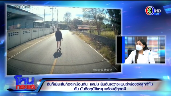 แหม่ม : ก็บอกว่าจะเลิก ไม่ต้องคุยอะไรทั้งนั้น พอเขาบอกว่าไม่เลิก ถ้าไม่เลิกก็ไปคุยที่บ้านนุ่น ให้จบๆ กันไป คุยกันต่อหน้า เขาก็เหมือนมีเถียงกันบ้างตลอดทาง จนช่วงเลี้ยวเข้าซอยชะลอ เขาก็พูดว่าไปคุยกันเองได้มั้ย 2 คน หนูก็บอกว่าคุยกันเองไม่ได้หรอก แล้วเขาก็โดดเลย