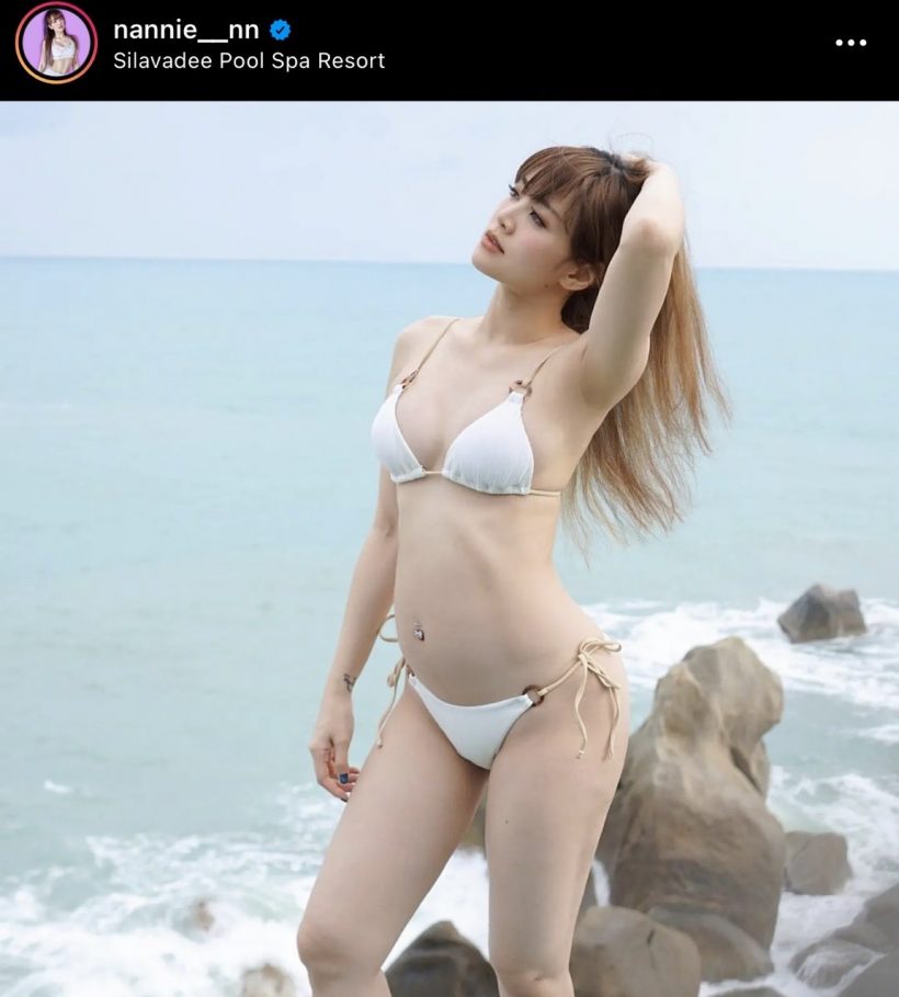 “แนนนี่ เกิร์ลลี่เบอร์รี่” อุ้มท้อง 5 เดือน นุ่งบิกิโชว์หุ่นแซ่บ ๆ