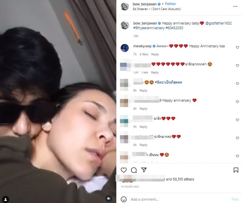ในขณะที่ทางด้านสาวโบว์ ทำคลิปรวมโมเมนต์น่ารัก ๆ พร้อมแคปชั่น “Happy anniversary baby @godfather1632 #9thyearanniversary #60452030”